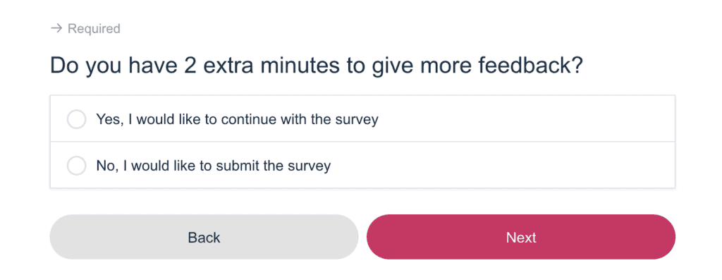 The survey will take about 4 minutes to complete (pretty quick) there is an option at the end of the survey to answer a few more questions that will take an additional 2 minutes if you choose to answer them.